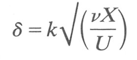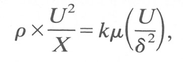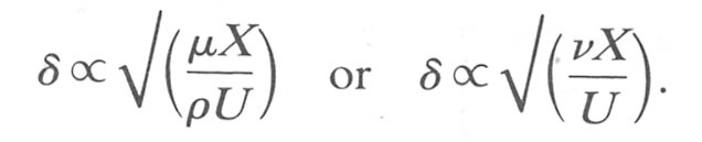 Thus to obtain an estimate of the magnitude of the viscous force we may relate it to the local thickness of the boundary layer (5) and the free stream velocity U. Then the viscous force is proportional to