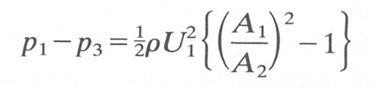 But we know that U2 is less than U1, so the static pressure in the larger downstream area is greater than that upstream. The excess kinetic energy associated with the flow has been converted into static pressure. If the flow had been in the reverse direction we would have seen a decrease in static pressure on entry to the region of smaller cross-sectional area. If the fluid was real and of low viscosity then we could apply the same argument, because the pressure loss due to viscous action in a short section of pipe in that region would be very small compared with the pressures involved in the Bernoulli balance (Equation (5.12)).