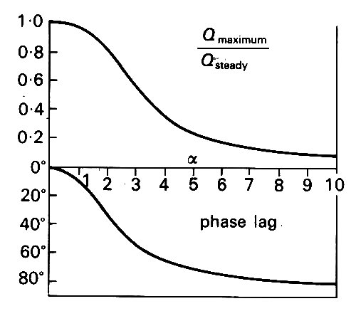 where QST is the flow-rate obtained for the pressure gradient Dp0. At higher values of a (in the range approximately 1-3) the instantaneous flow-rate lags behind the instantaneous pressure gradient by an amount of time f and then Equation 5.10 becomes
