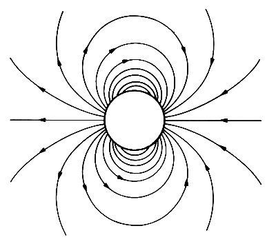 Fig. 5.19. A diagram of the (unsteady) streamlines set up by the motion of the cylinder in a fluid otherwise at rest. Fluid is pushed to the sides in front of the cylinder, and moves in behind it again when it has passed.