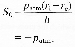 That is to say, all normal stresses are compressive and equal to atmospheric pressure. If, during a departure from this situation, pe remains atmospheric, if pi exceeds patm by an amount p', and if S0 exceeds (-patm) by an amount S', then Equation (7.5) can be used to give
