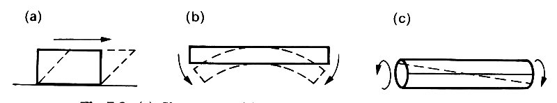 Fig. 7.3. (a) Shear stress, (b) Bending stress. (c) Torsional stress.