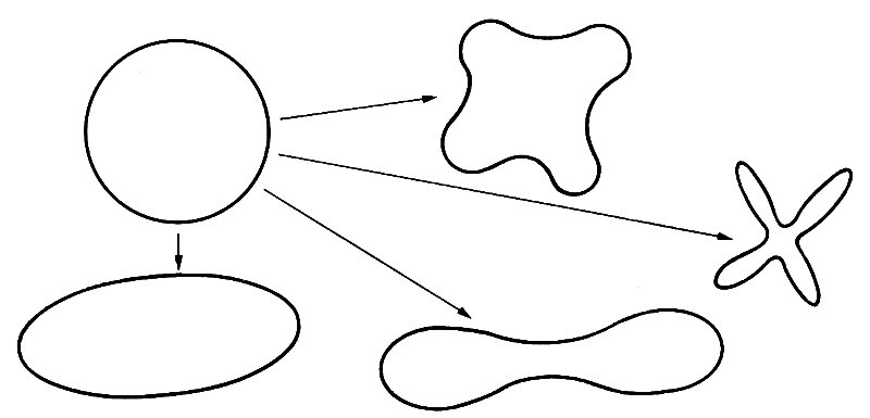 Fig. 7.11. Some of the shapes into which the cross-section of a circular tube might collapse.